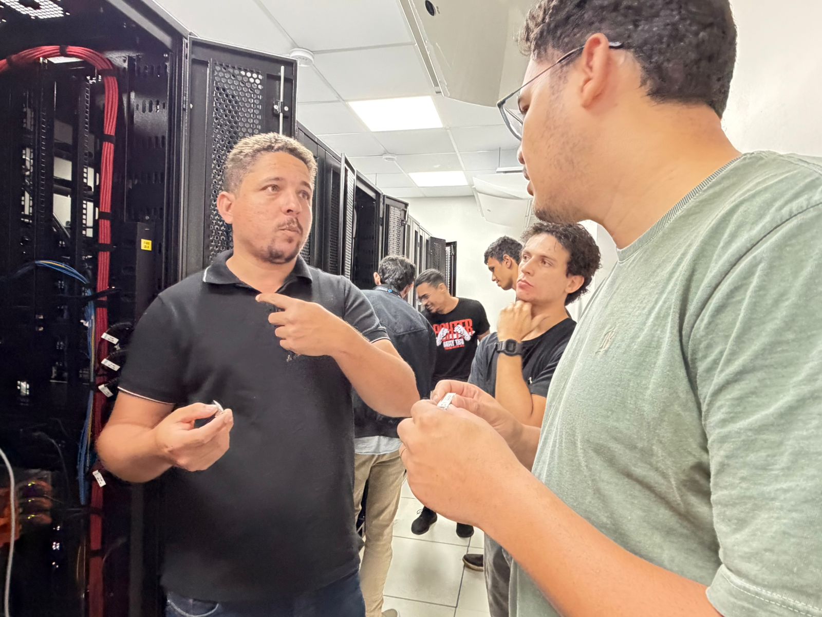 Durante a visita, a equipe da UNEAL apresentou aspectos de sua infraestrutura de redes e TI, compartilhando desafios, estratégias e perspectivas relacionadas à conectividade e à gestão tecnológica. Em seguida, os visitantes puderam conhecer a infraestrutura do PoP-AL, incluindo o ambiente do datacenter, suas soluções tecnológicas e o papel estratégico desempenhado na conectividade acadêmica e institucional no estado de Alagoas.